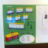 Création, réalisation et impression d’un tableau d’organisation (numéro de chambre, prénom de l’enfant, soins en cours…) à destination du corps médical et des parents.